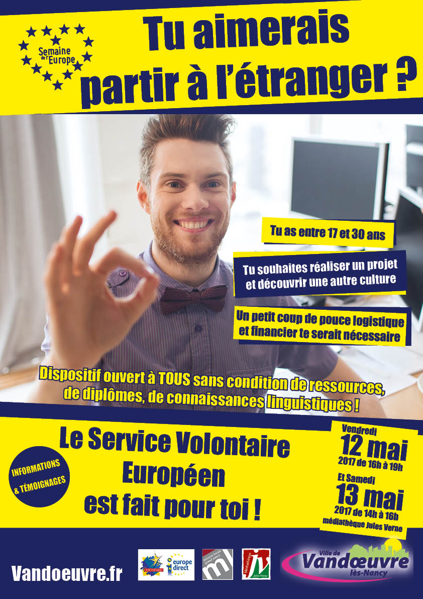 13h-20h – Médiathèque Jules Verne de Vandoeuvre : stand et atelier d’information sur les programmes de mobilité européenne pour les jeunes (17-30 ans) notamment sur le Service Volontaire Européen et le Service Eco-Citoyen en Grande Région